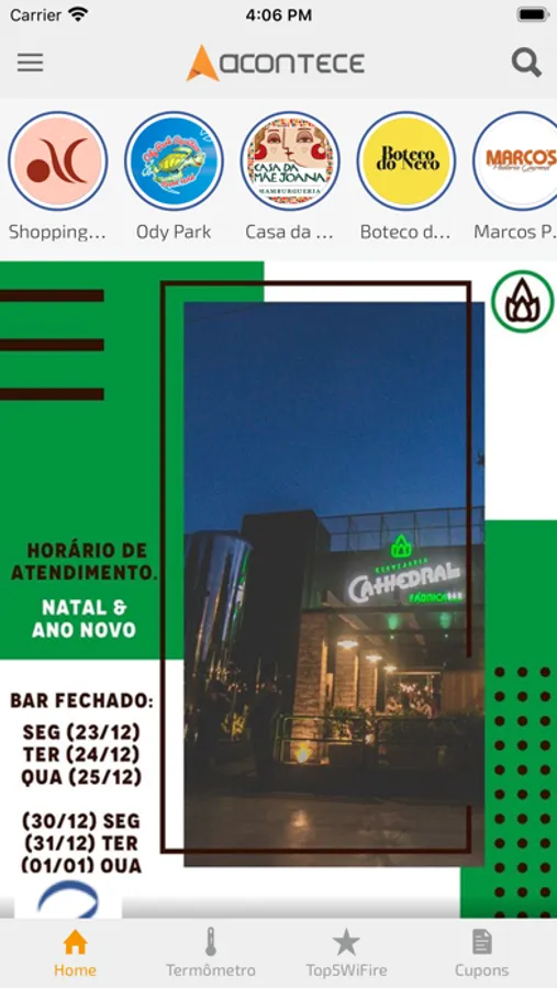 Aplicativo onde você encontra tudo o que esta acontecendo nos estabelecimentos de sua cidade promoções, eventos, qual é mais indicado, qual esta bombando neste momento, qual é melhor avaliado pelos seus clientes e muito mais