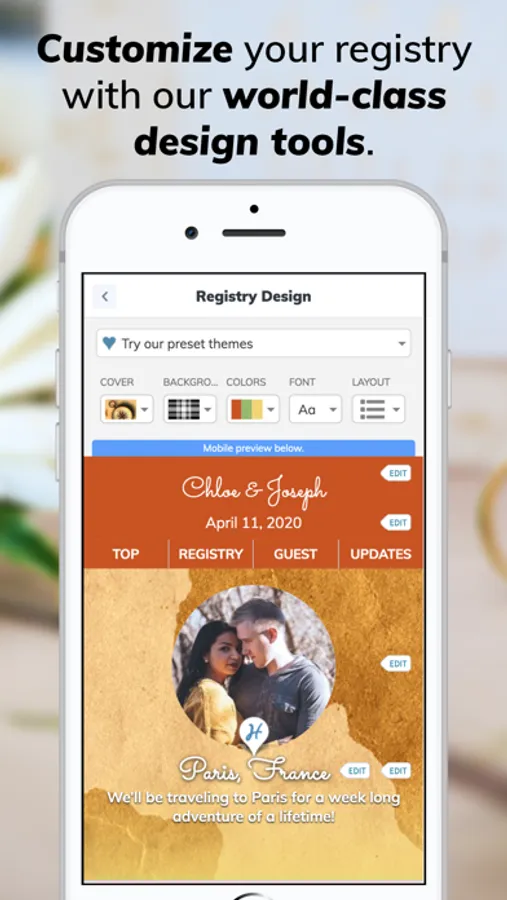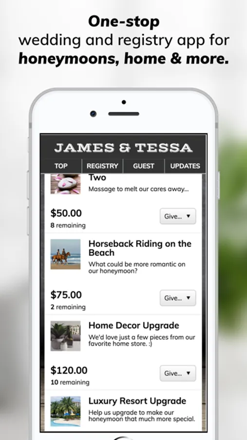 * Create a gorgeous honeymoon registry to make your honeymoon happen