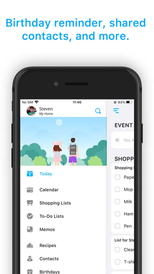 Organize your calendar, projects and notes at everywhere, access with any devices. The whole family group shares one account, so login with your own email address and a shared password.