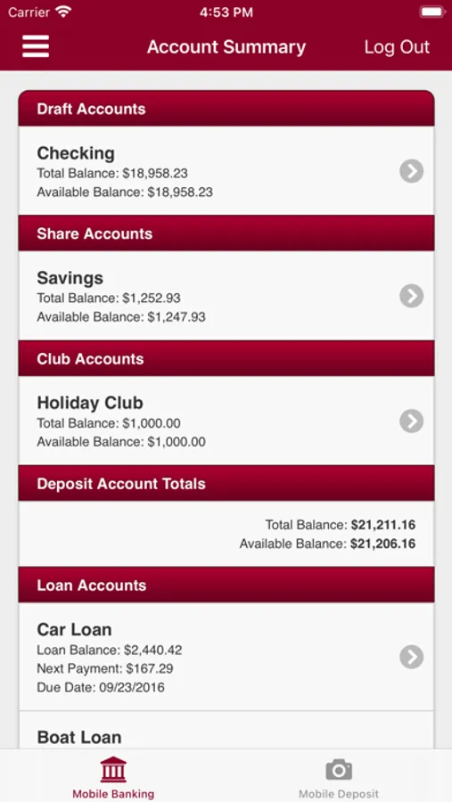 Multi-Account Aggregation: View all of your financial information (balances, transaction history, merchant spending averages) in one place for on-the-go organization.
