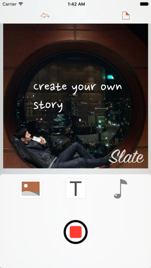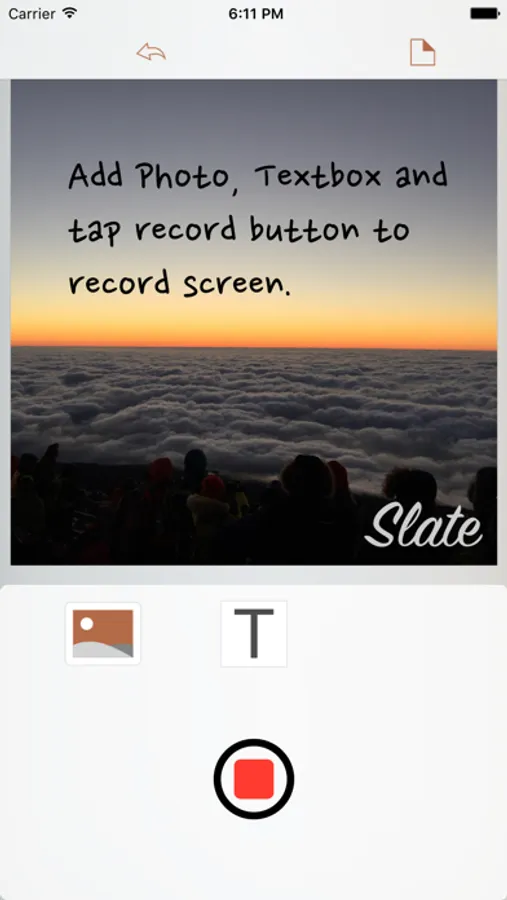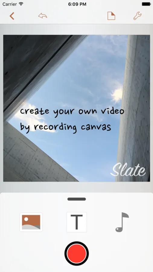 Method of use is very simple. Make a scene by select Photo, Text, Music item and put them the canvas. And Select record button then your screen will recorded as you see.