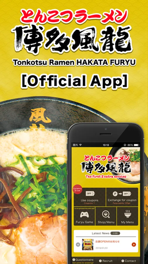 Welcome to Tonkotsu Ramen HAKATAFURYU Official App!