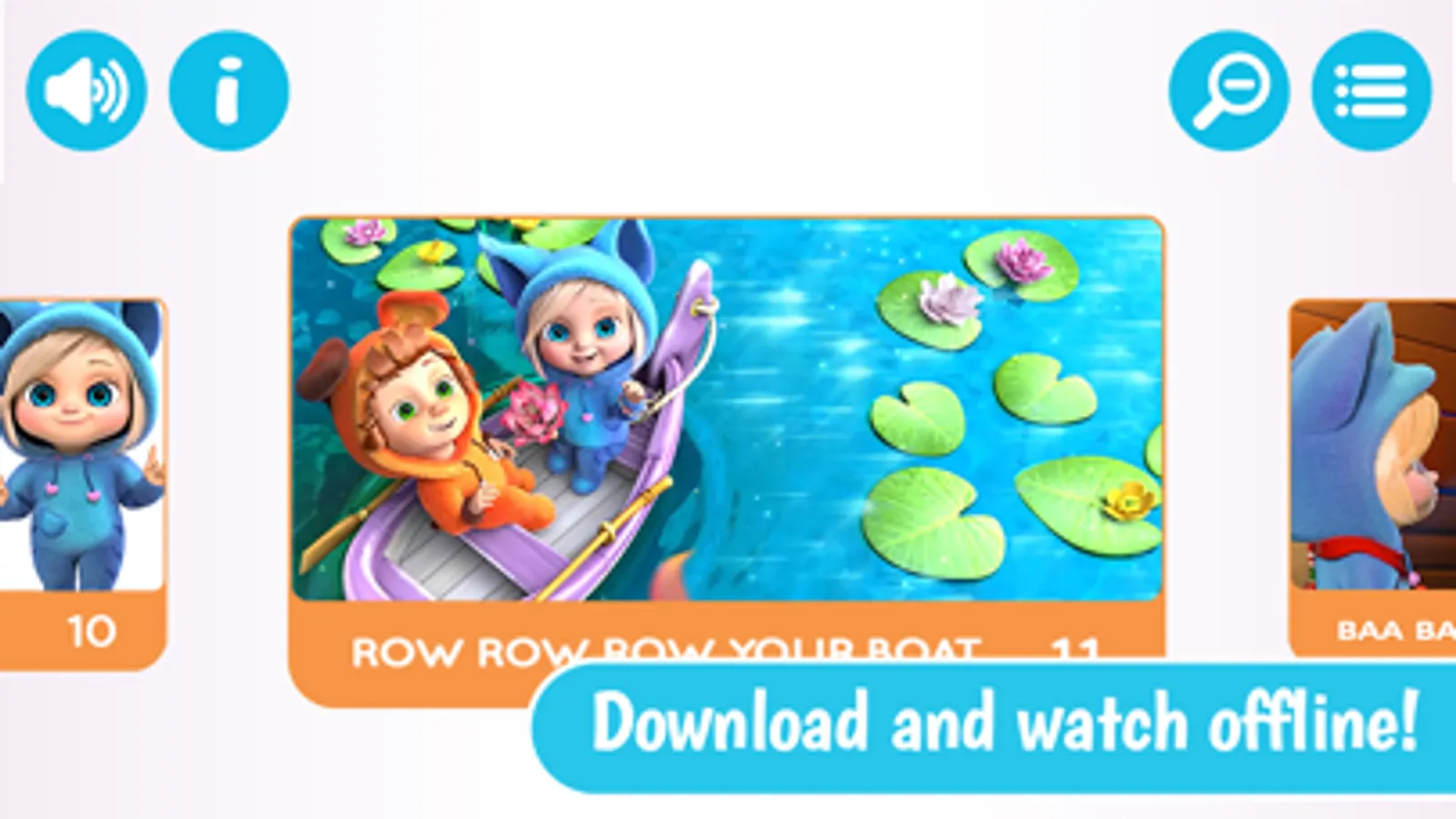 This app contains more than 100 videos by "Dave and Ava - Nursery Rhymes and Baby Songs" YouTube channel.