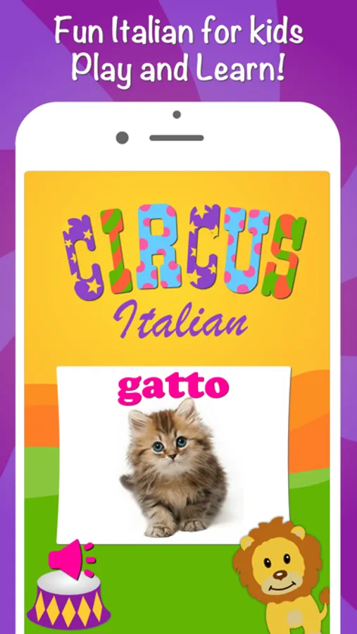 Fun Circus Italian for kids will help to learn Italian language quickly and easily! Colorful flashcards with sounds is the best way to remember new words and train pronunciation.