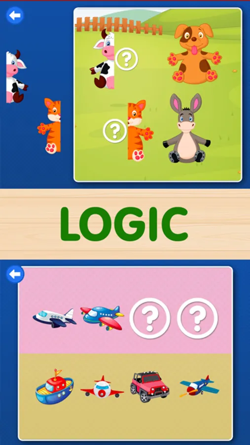 Logic Puzzles for Kids is a learning logical app for 2-5-year-old kids. It includes several training mini-games.