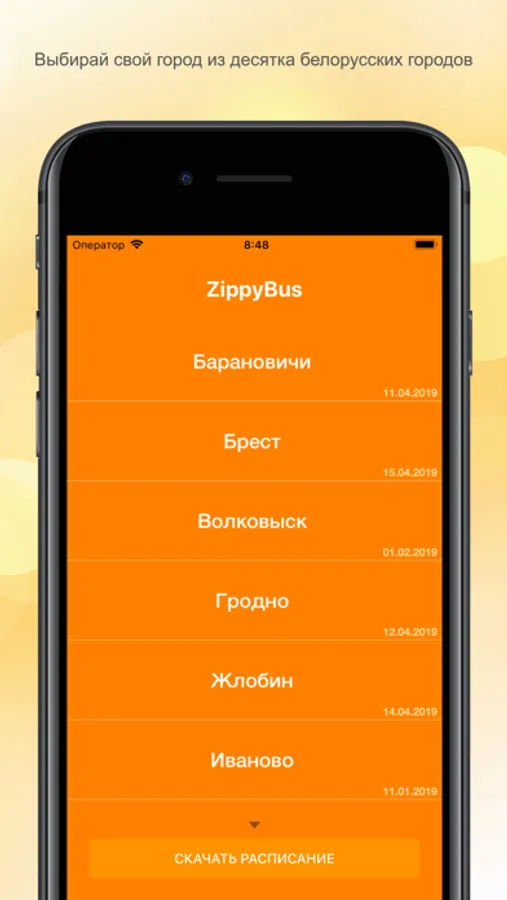 ZippyBus — это мобильное расписание общественного транспорта белорусских городов: Минск, Брест, Гродно, Горки, Барановичи, Борисов, Быхов, Витебск, Заславль, Молодечно, Могилев и Могилевский район, Полоцк и Новополоцк, Жлобин, Жодино, Пинск и Пинский район, Лида, Волковыск, Лунинец, Иваново и Смолевичи, Кобрин, Горки и Белыничский район, Кричев, Славгородский район, Мядель и Вилейка