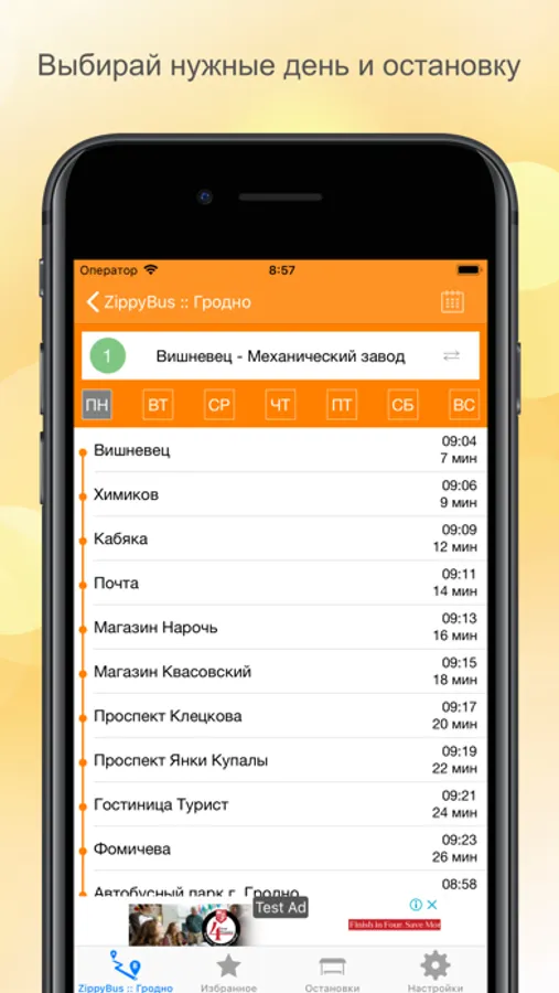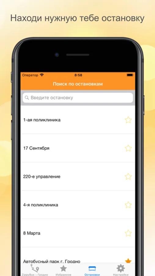 — Добавление/удаление в "Избранное" часто используемых остановок и маршрутов