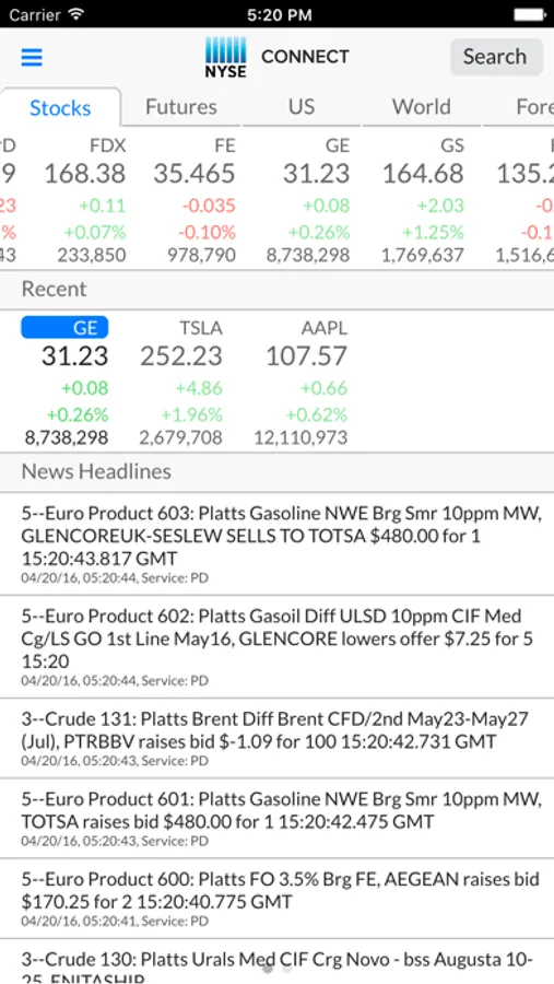The NYSE Connect mobile apps allow subscribers access to the same streaming financial market pricing data, historical pricing data, fundamental data, news, charting, analytics found through its desktop counterpart. NYSE Connect’s portability provides a continuous cross device experience bringing your watchlists, filters and other shared preferences where ever you choose to access NYSE Connect.