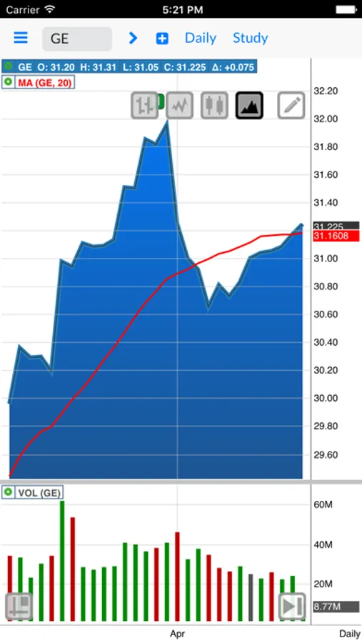 Charts – robust streaming interactive charts with overlays, comparison, studies and a wide variety of chart aggregations and time frames.