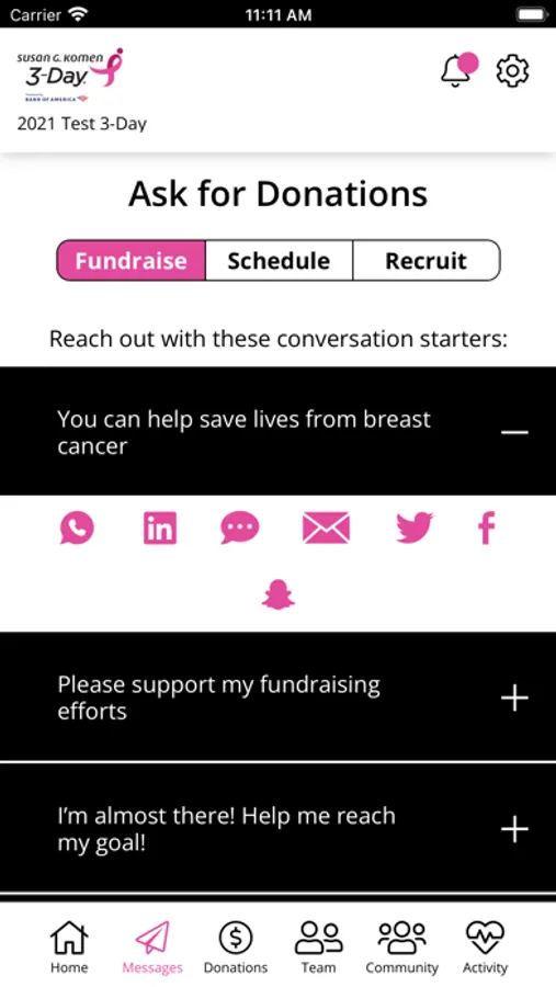 Do your fundraising on the go with your Komen 3-Day application. Update your fundraising page, send emails, check your fundraising progress, and connect to Apple HealthKit to track your physical activity with other Komen 3-Day participants and teams – all from the palm of your hand. The Komen 3-Day application is a great tool to track your fundraising progress, and to keep current on all Komen 3-Day news!