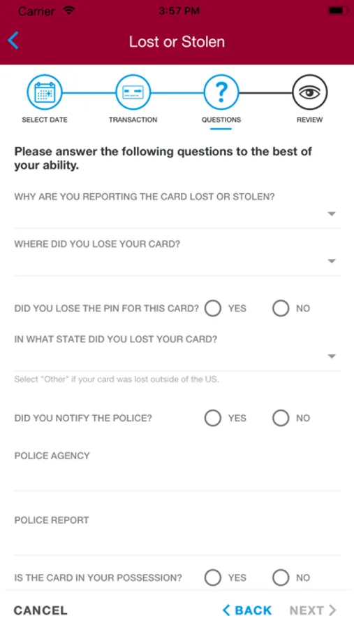 • Report a card lost or stolen.