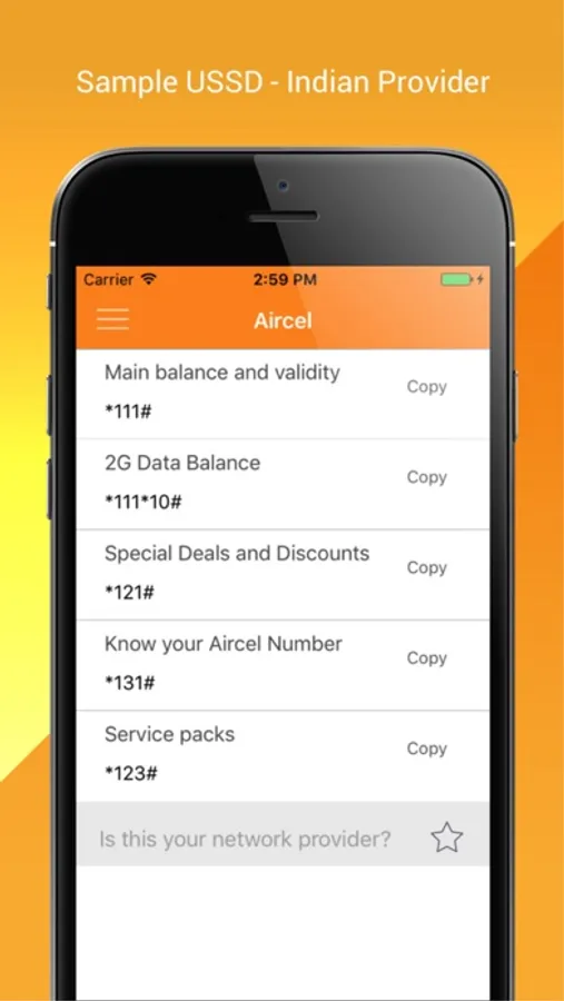 Provided USSD codes for the following mobile networks.