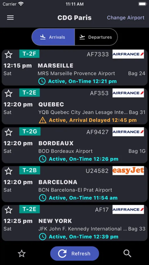 Flight arrivals and departures information for Paris Charles De Gaulle Airport, CDG