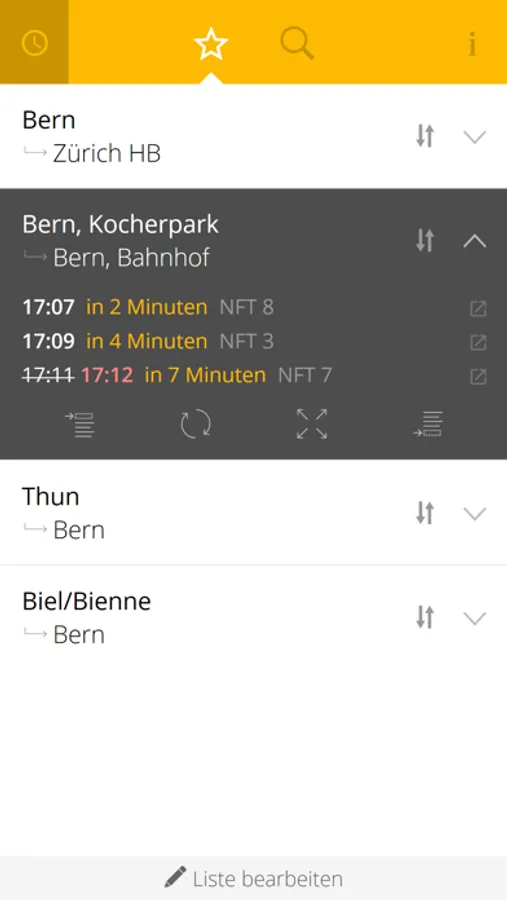 Anyone regularly traveling using public transport often runs the same routes over and over again. Often, one wishes to just quickly see upcoming departure times of such a route, without having to search long and tediously.