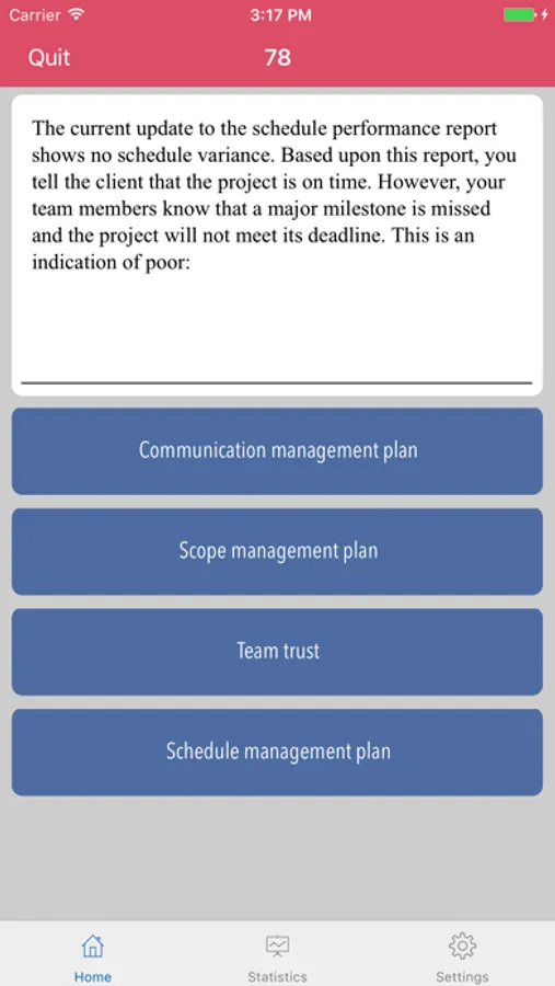 PMP® in 90 Seconds practice test app is a unique exam simulator that allows you to answer the questions as much as possible within a limited time frame. View your results and success rates for each chapter with just a few taps. Study any time, anywhere without internet connectivity.
