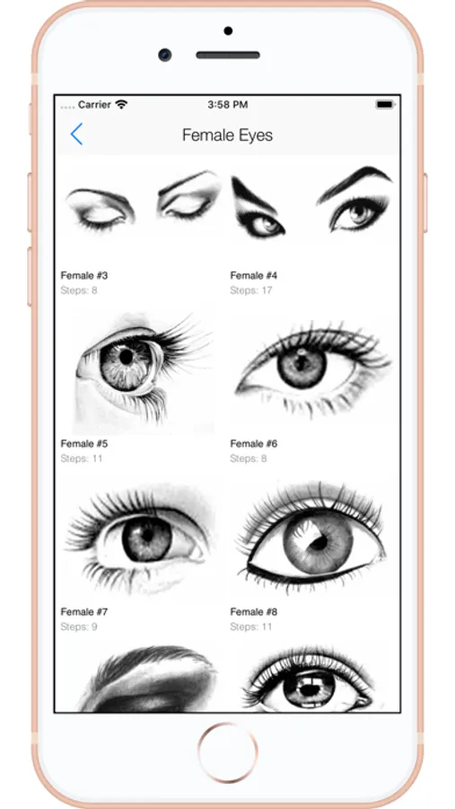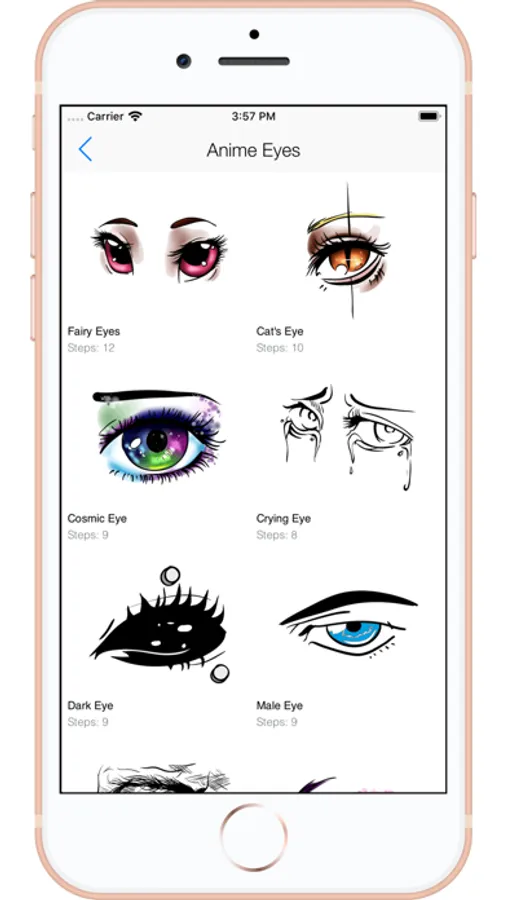 * Draw Anime Eyes - Cutest Eyes has collected a lot of various lessons. You can find any eyes which you want in Draw Anime Eyes - Cutest Eyes. All of them is here.