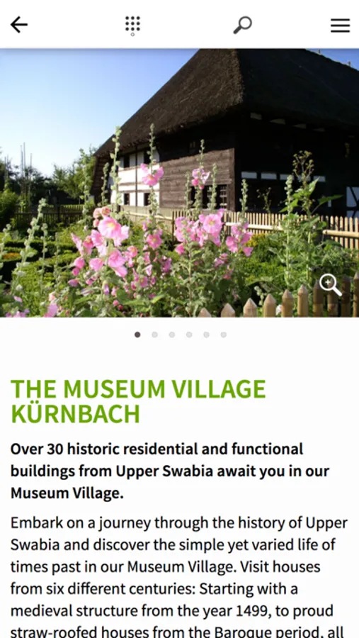 The official Upper Swabian Museum Village Kürnbach app featuring the Multimedia Guide brings history to life and guides you on a journey through time and the history of Upper Swabia. Discover the simple yet varied life of times past and visit our houses from six different centuries: Starting with a medieval structure from the year 1499, to proud straw-roofed houses from the Baroque period, all the way to buildings from the recent past. In addition to the Multimedia Guide the app also provides you with all of the information you need for your visit, including opering hours, prices, your route planner and much more.