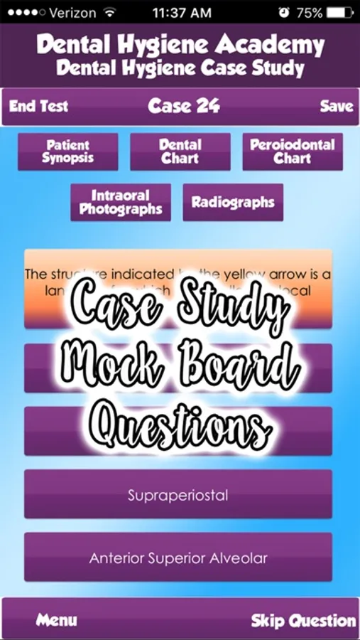 FREE VERSION: One FREE case study. Full version has 25 Cases with 15 questions each. Exactly the same amount of questions per case as the real National Board. (The real National Board exam contains 15 cases). Purchase the full app version now and get FREE lifetime upgrades.