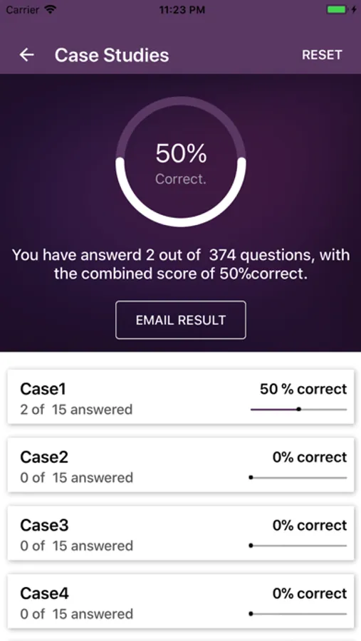 25 Cases with 15 questions each. Exactly the same amount of questions per case as the real National Board. (The real National Board exam contains 15 cases). Purchase the app now and get FREE lifetime upgrades.
