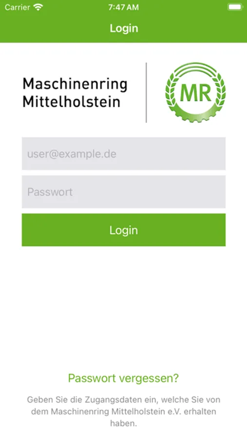 Mit dieser App können Mitglieder des Maschinenring Mittelholstein e.V. schnell und von überall Maschinen mieten. Bei Interesse an einer eigenen Maschinenring-App können sich Maschinenringe an den Maschinenring Mittelholstein e.V. oder direkt an den Appverlag wenden.
