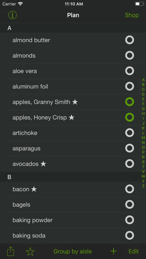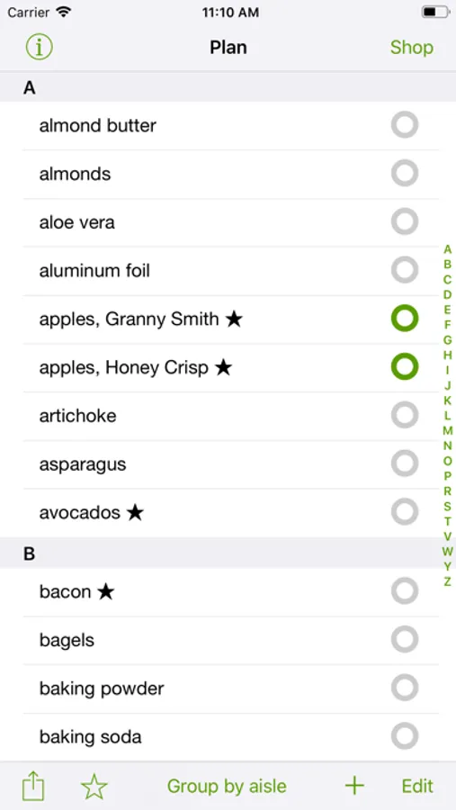 * Order items alphabetically or by aisle