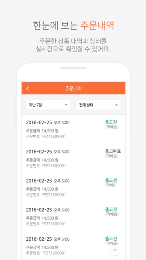 주문하신 상품의 출고상태도 실시간으로 확인해보세요.