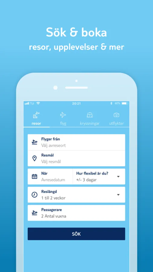 - Sök bland mängder av resor, flyg och hotell. Boka och betala direkt via appen