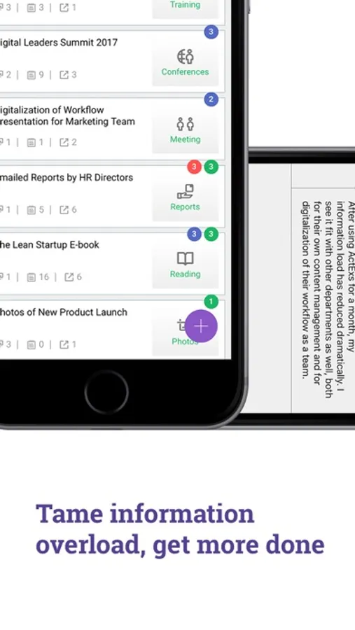 ActExs combines the features of note taking apps, PDF annotation apps, list apps, conference apps, and KPI tracking apps. It uses their individual assets to create one powerful app of their collective strengths so that you can think, act and lead in an intelligible workflow to tame information overload.