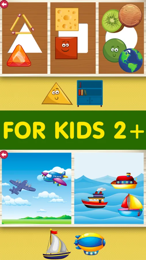 The app includes 12 mini-games with different colorful combinations of the objects under study. The games are built on the principle "from the simple to the complex" and will keep your child occupied from the very first minutes.