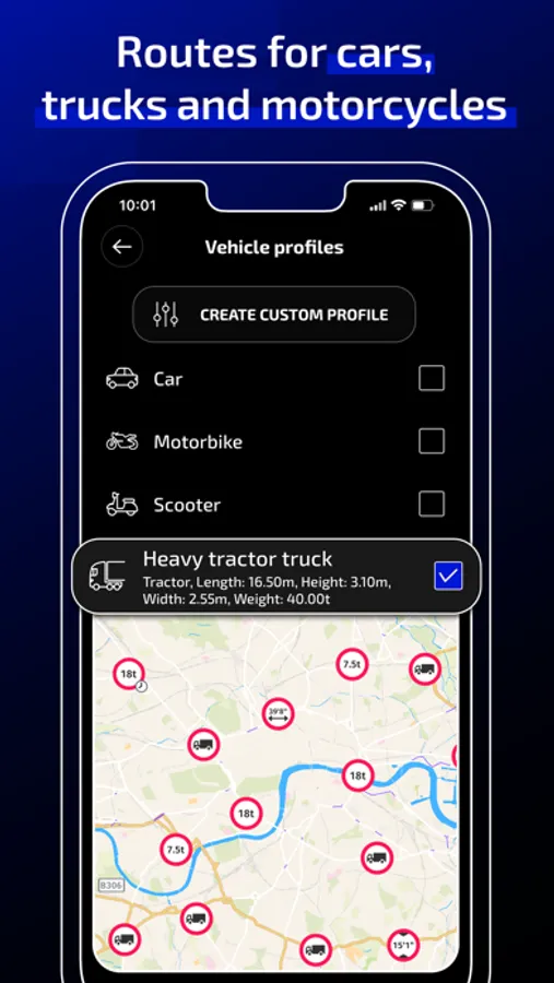 - Routes with special restrictions for trucks and commercial vehicles.