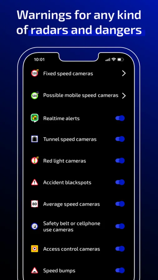 Enjoy driving without having to worry about jeopardizing your driver’s license or your safety. Avoid traffic fines and penalties by receiving clear warnings before reaching a radar: