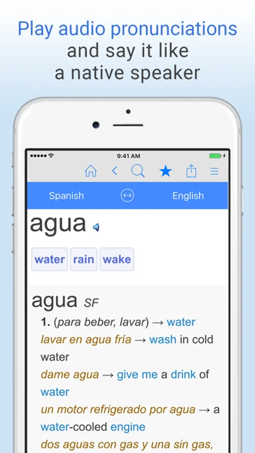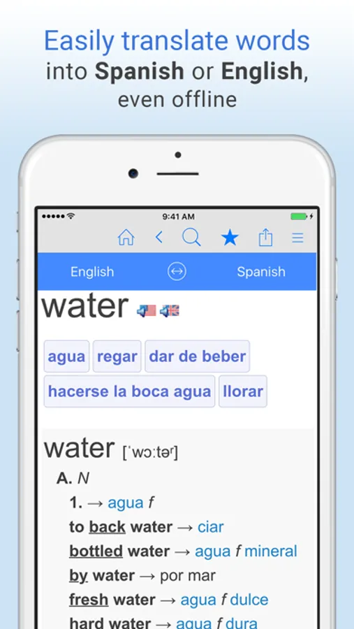 * Get both English-Spanish and Spanish-English translations, all from authoritative sources.