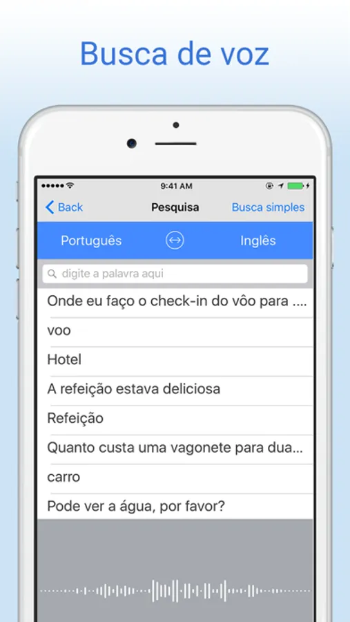 * Digite sua busca ou use busca em voz nativa para simplesmente falar a palavra que deseja traduzir.