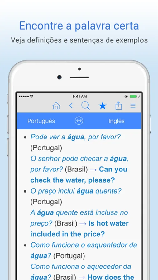 * Alterne o modo de tradução de inglês-português para português-inglês com um toque.