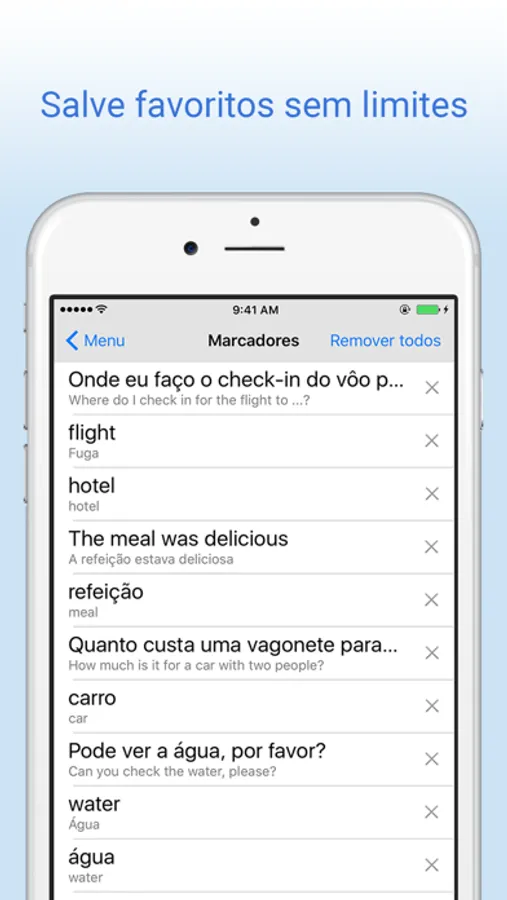 * Salve favoritos sem limites e acesse rapidamente todas as suas palavras.