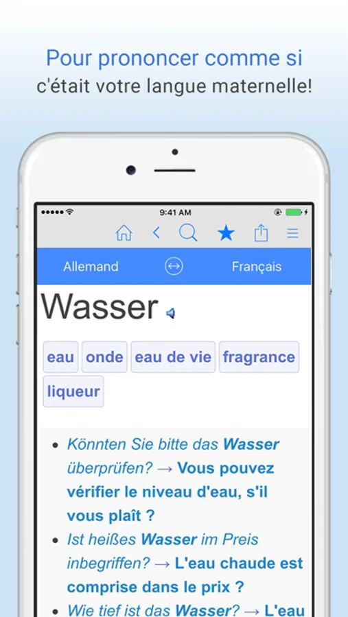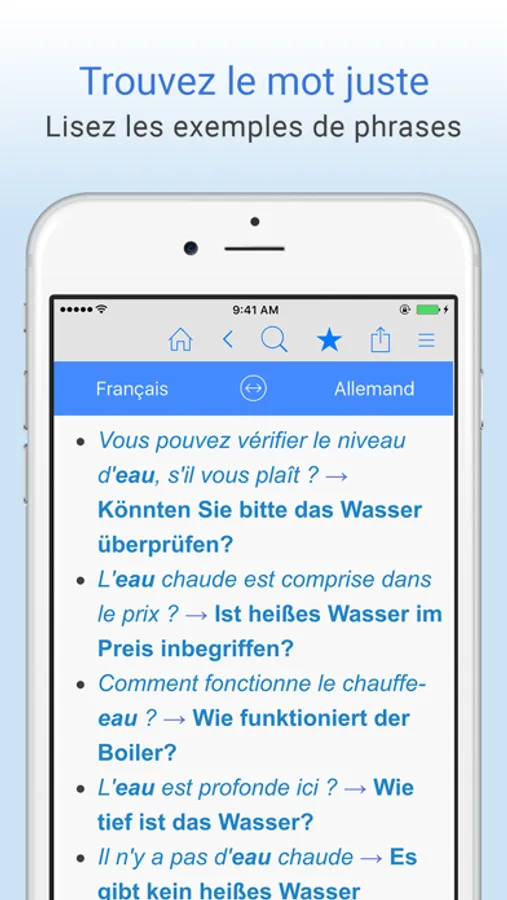 * Passez du mode traduction français-allemand au mode allemand-français en un seul geste.