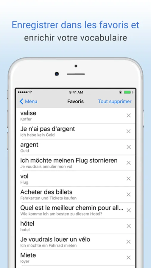 * Sauvegardez un nombre illimité de favoris pour accéder rapidement à tous vos mots enregistrés.