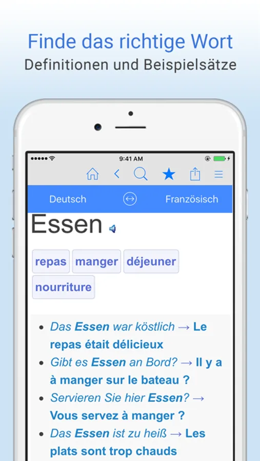 * Wechsele mit nur einem Tap vom Deutsch-Französisch zum Französisch-Deutsch Modus.