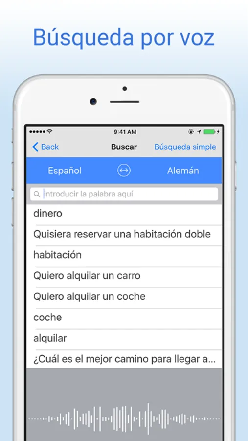 * Escriba en el teclado su búsqueda o use la búsqueda por voz en su idioma nativo para simplemente decir la palabra que usted desea traducir.