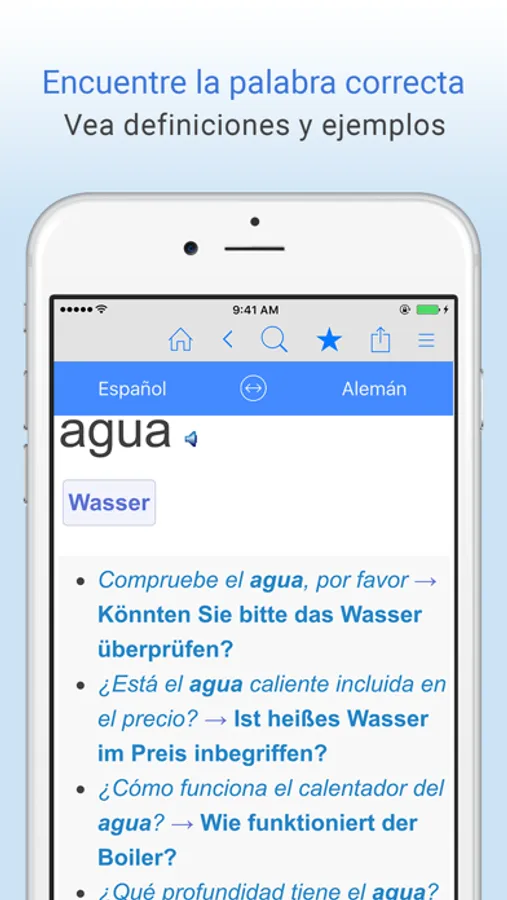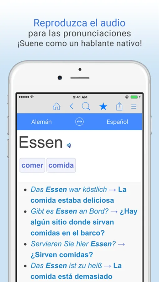 Traduzca palabras y frases comunes del Español al Alemán o del Alemán al Español. ¡El Diccionario de Traducción Español-Alemán de Farlex le entrega traducciones instantáneas con búsqueda por voz y texto, más pronunciaciones con audio, definiciones, ejemplos de oraciones, y más!