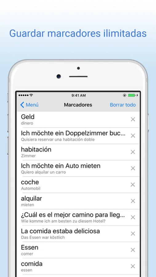 * Guarde marcadores ilimitados y acceda rápidamente a todas sus palabras.