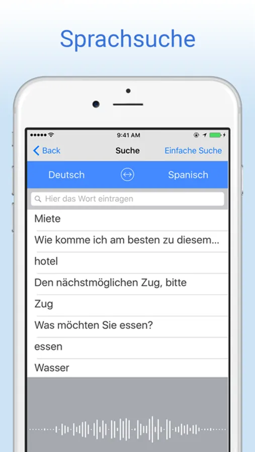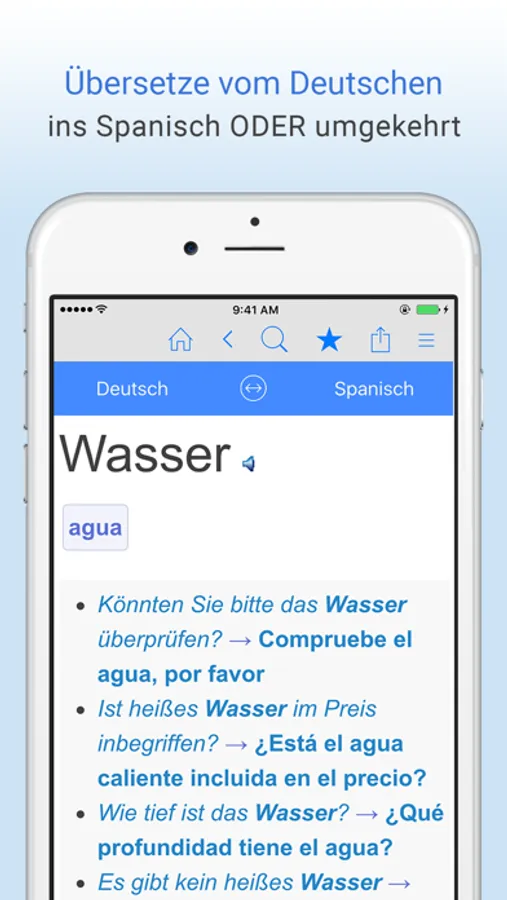 * Wechsele mit nur einem Tap vom Deutsch-Spanisch zum Spanisch-Deutsch Modus.