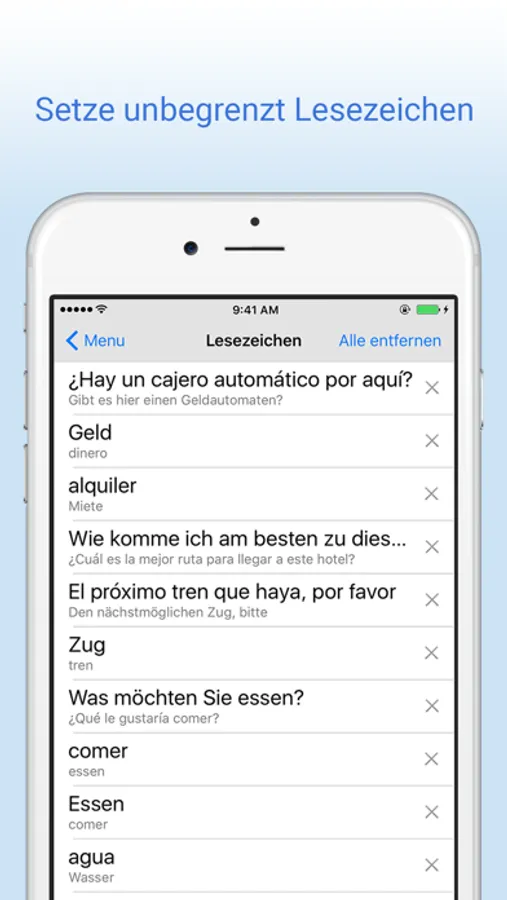 * Setze unbegrenzt Lesezeichen und greife schnell auf alle gespeicherten Wörter zu.