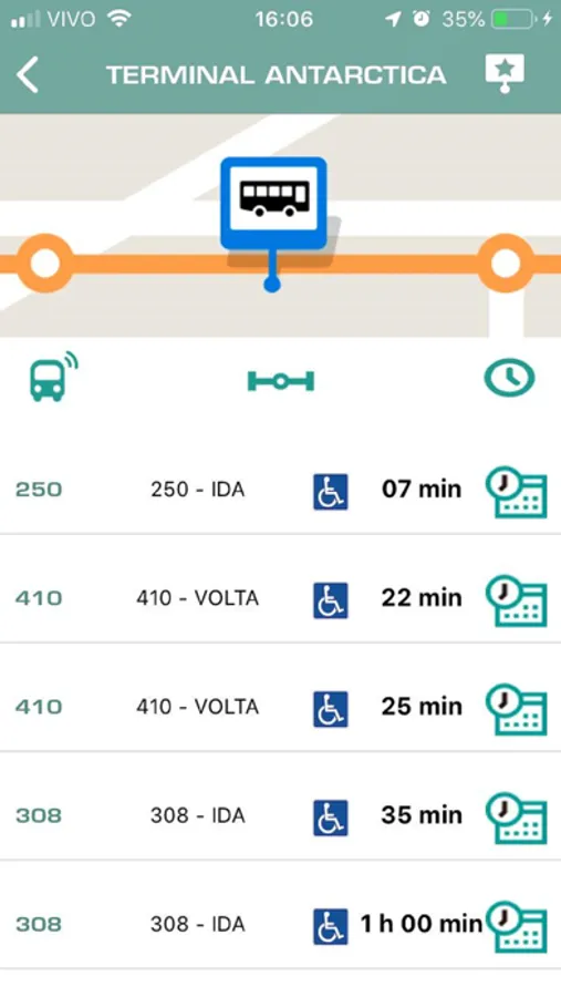 · Selecione o ponto de parada desejado e visualize as linhas que passam por este ponto e suas respectivas previsões de chegada;