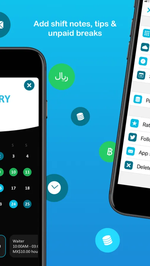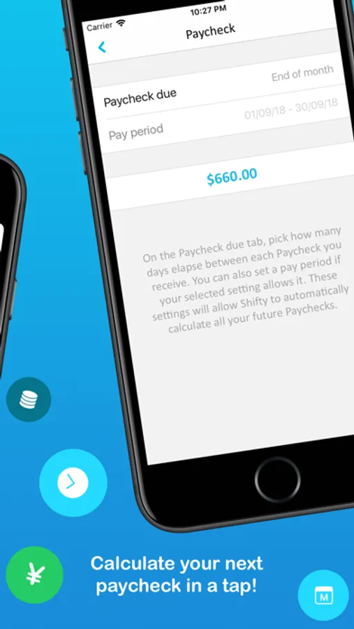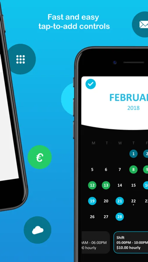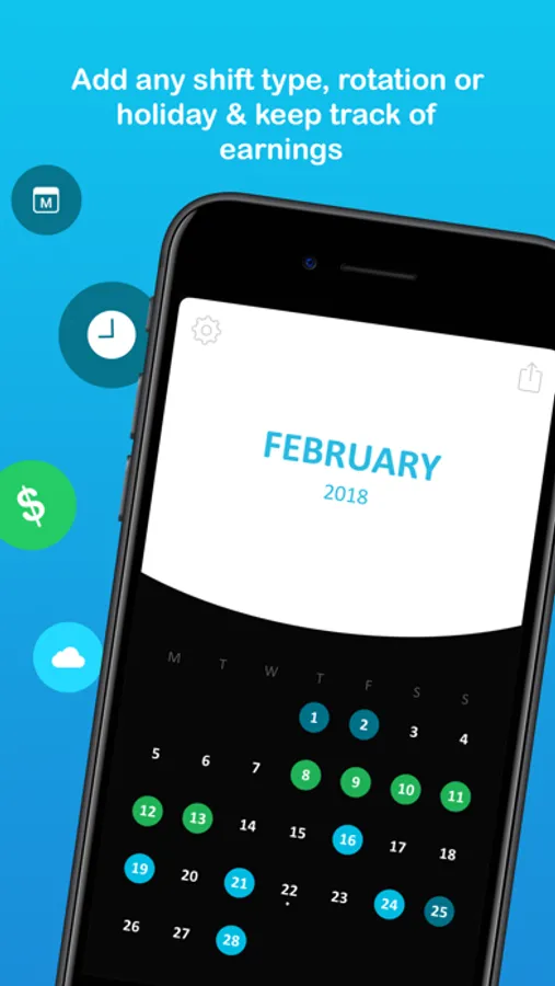 You can choose from a list of shift types and begin adding your shifts, rotations and holidays in seconds for the next 2 years! Your shifts are automatically categorized as a day or night shift through colors. You keep track of your earnings, tips, breaks, shift notes, and be notified when your next shift starts. Shifty will even calculate your next Paycheck for you!