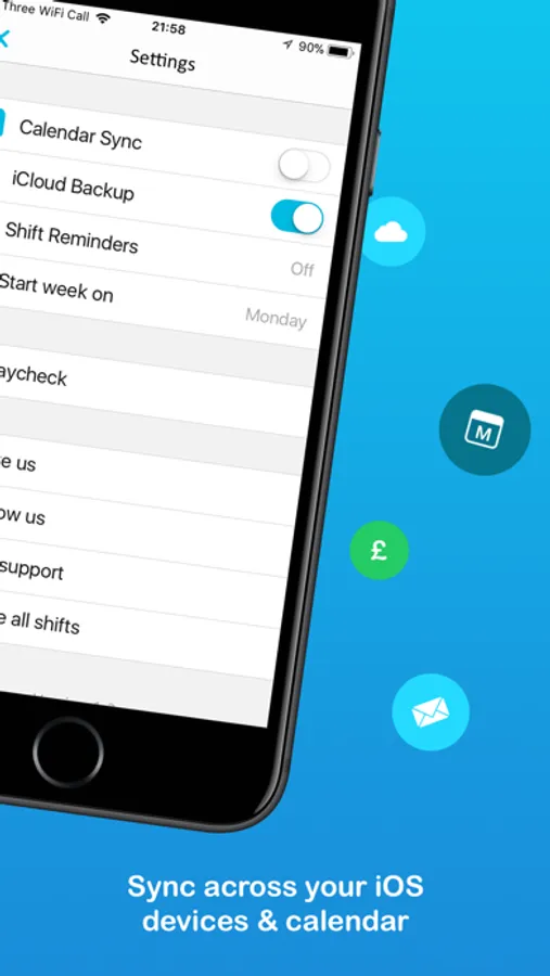 iCloud backup will sync them all across your iOS devices while keeping them backed up to the cloud. You can also sync your shifts with your iOS calendar to make those days out easier to plan.