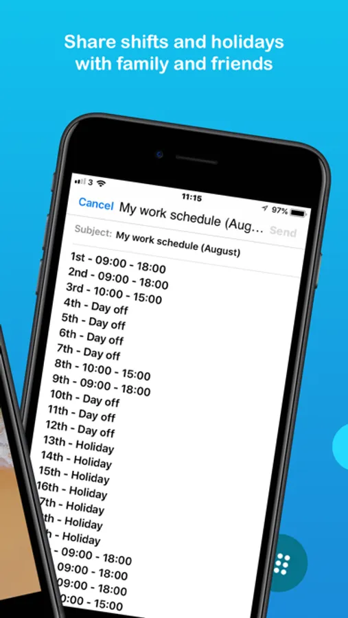 Once you are all finished setting up your shifts and holidays, you can share them with your friends, family or work colleagues.