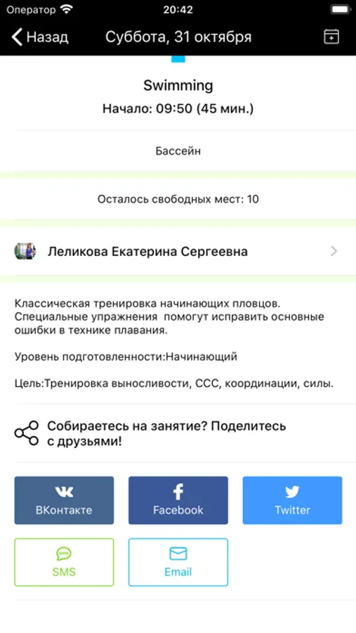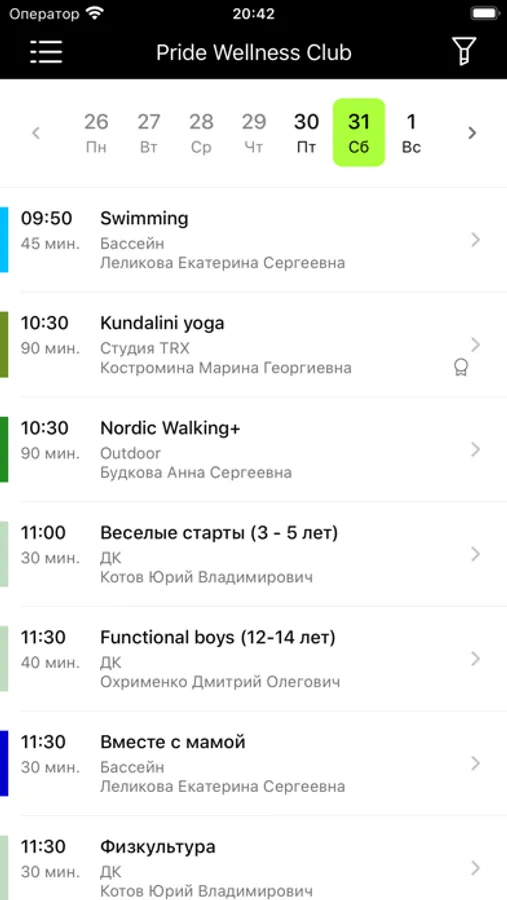 - получать оповещения о предстоящих тренировках и обо всех изменениях;