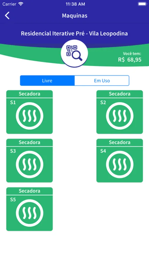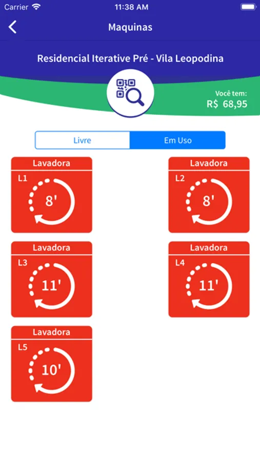 Desbloqueio das máquinas utilizando o QR Code do App;
