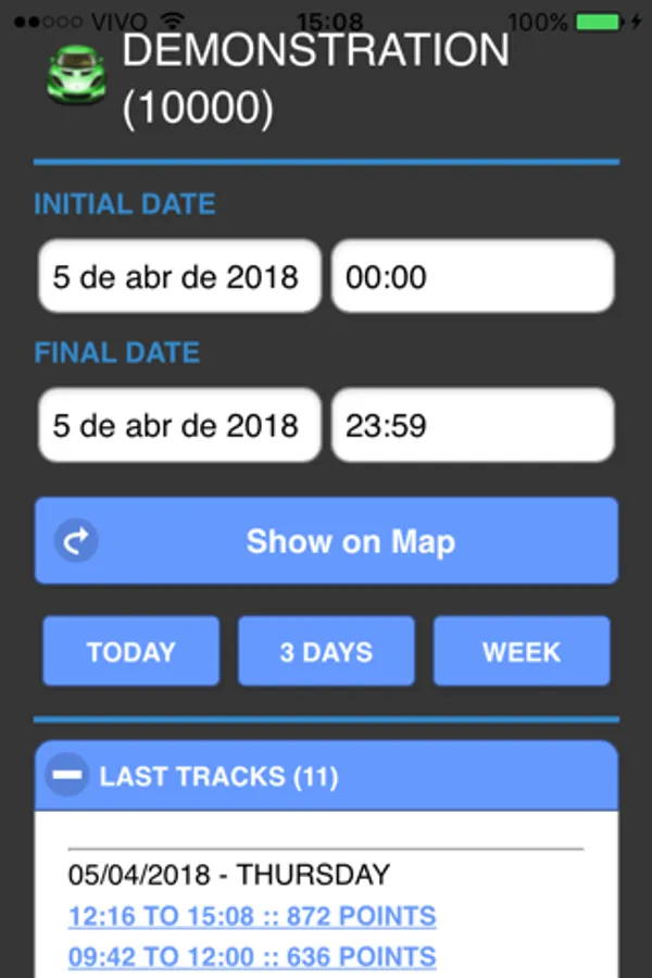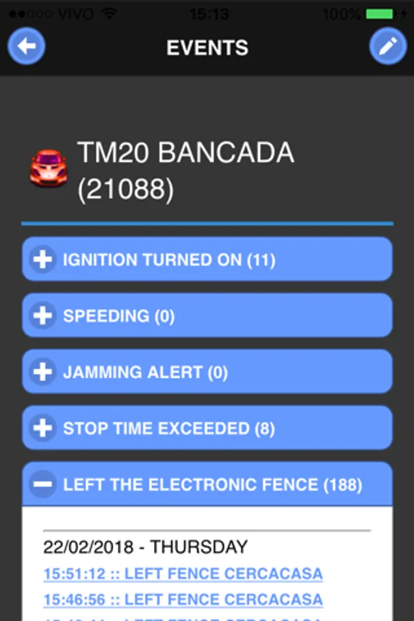- View vehicle history with address information, date, time, speed, ignition status, etc.
